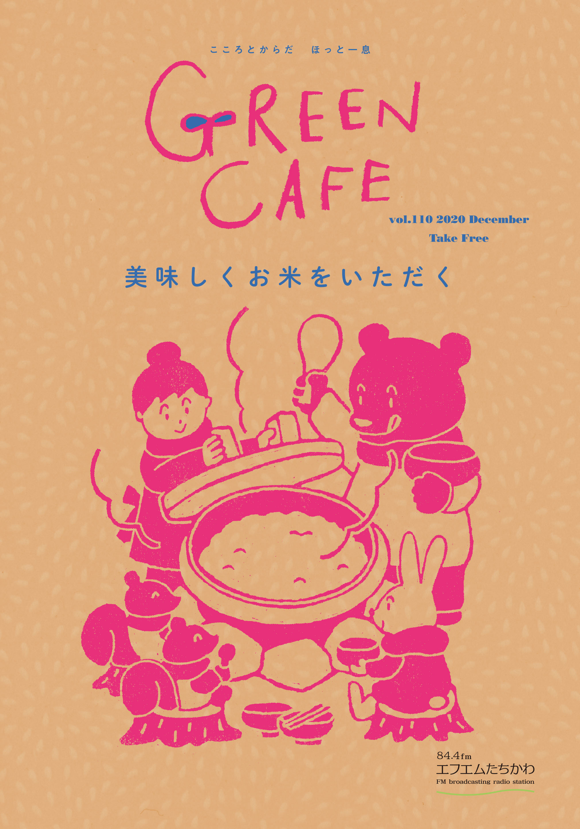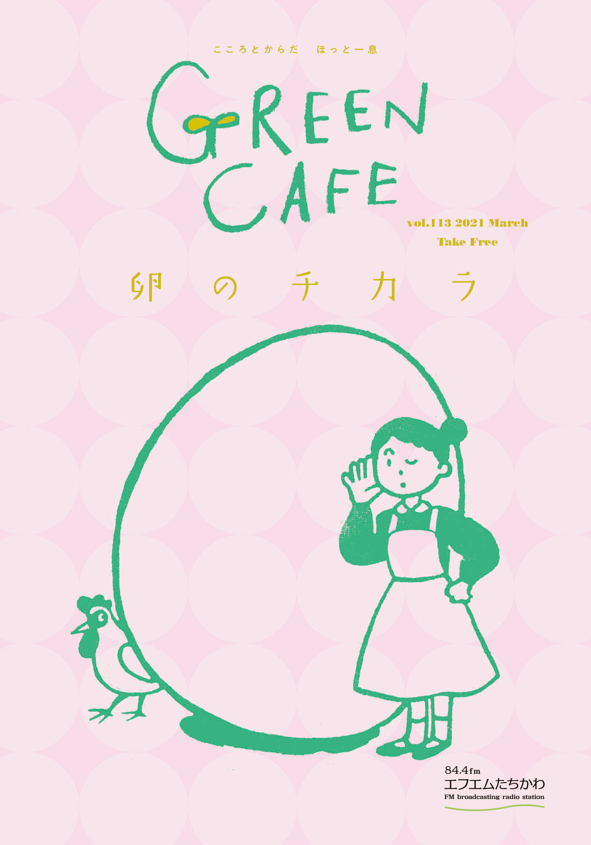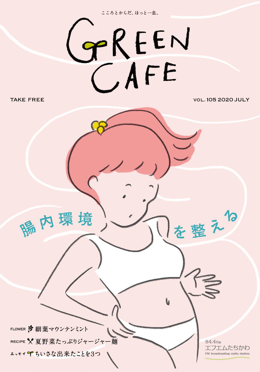 「Green Cafe」では、ココロとカラダがほっとできるような情報を、可愛らしいイラストと共にフリーペーパーでご紹介しております。