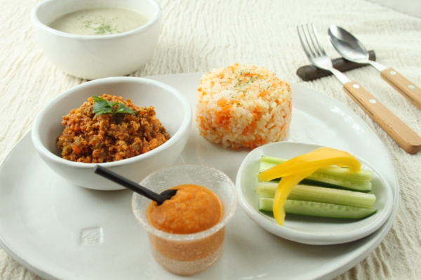 - 炊き立てのご飯に③、オリーブ油、ハーブソルトを加えてざっくりと混ぜ合わせて出来上がり。