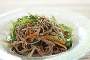 2. 大根と人参、水菜は千切りにし、塩を少々ふって水気がでたら、水気を切っておく。わかめは水につけて塩気をぬき、適当な大きさに切る。