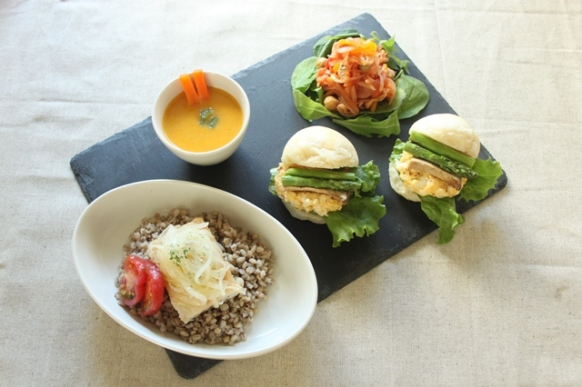 - 鍋にオリーブ油をひき、玉ねぎとにんにくを炒め、長いも、えのき、ひよこ豆を加えてさらに炒め合わせ、料理酒をふる。