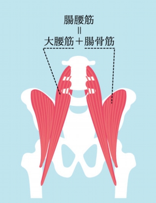 上半身と下半身を繋ぐ筋肉のことを「腸(ちょう)腰筋(ようきん)」といい、骨盤や背骨を支える役割があります。この腸腰筋が、体の中心部を支えて体の軸を安定させる働きがあるため、この筋肉が弱まると姿勢が悪くなり、体がゆがむ原因になります。毎日の生活の中で、立ったり座ったりするときには正しい姿勢を心掛けるようにしましょう。