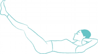 2、両手を頭の後ろで組むか、お腹に添えて、足をゆっくり持ち上げます。