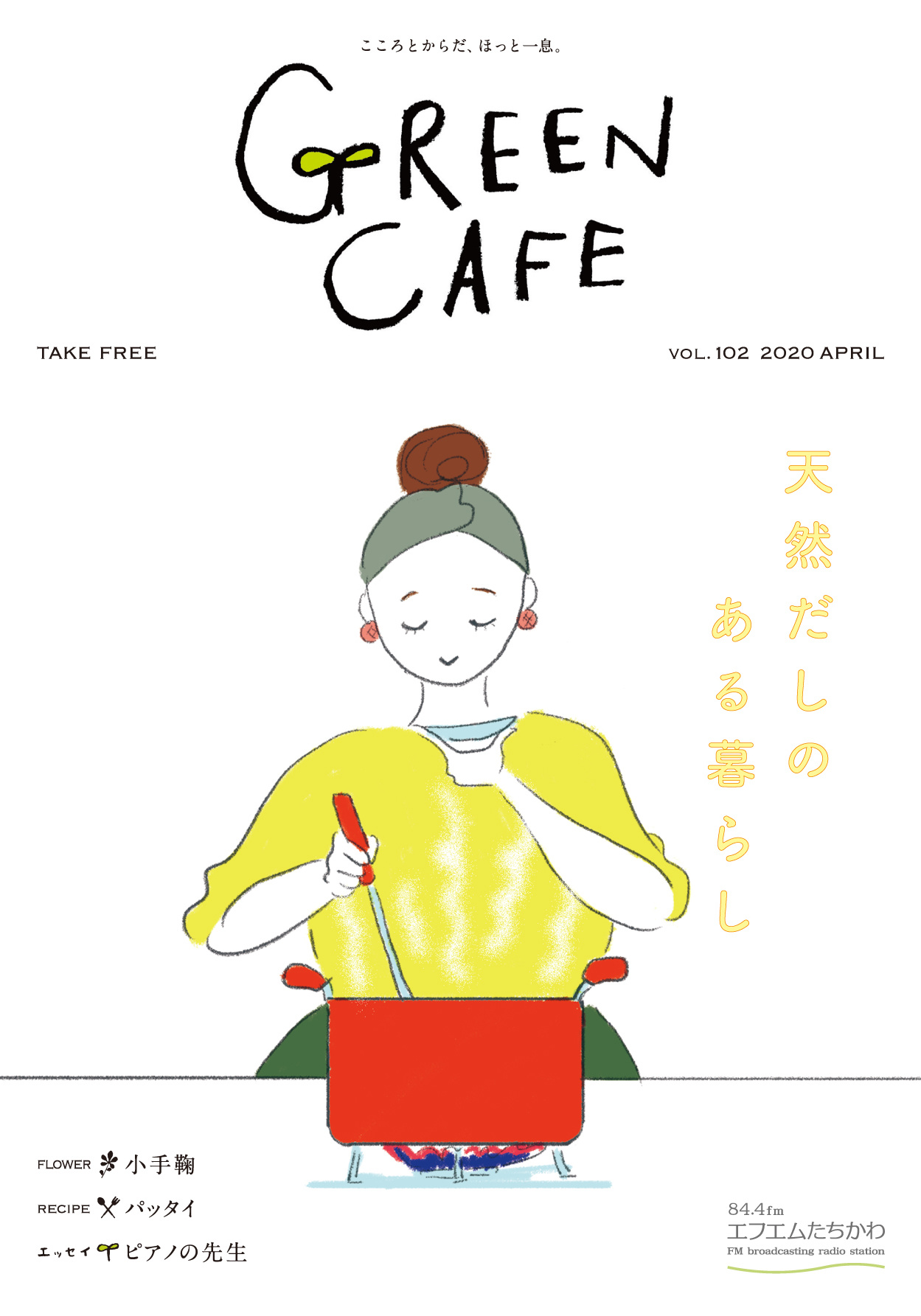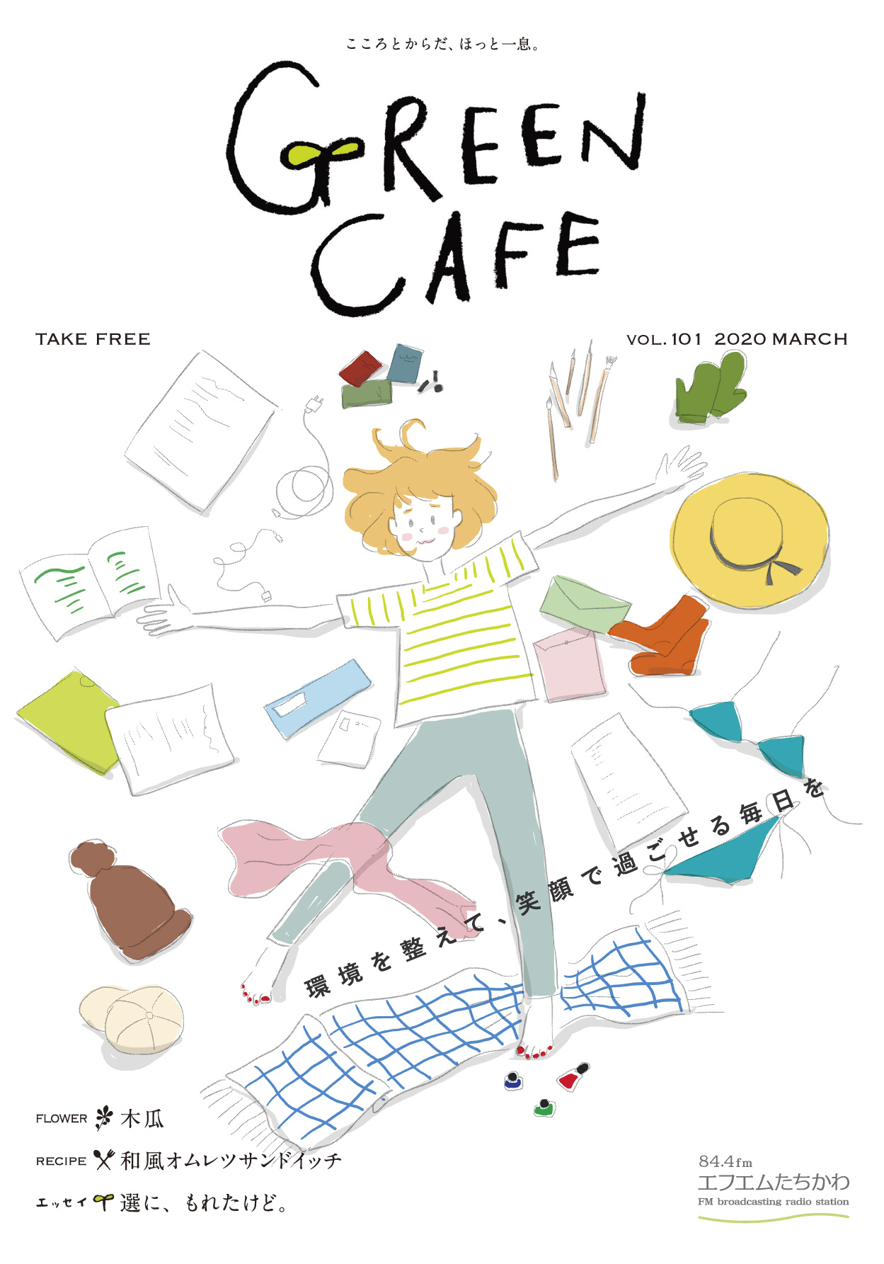 「Green Cafe」では、ココロとカラダがほっとできるような情報を、可愛らしいイラストと共にフリーペーパーでご紹介しております。