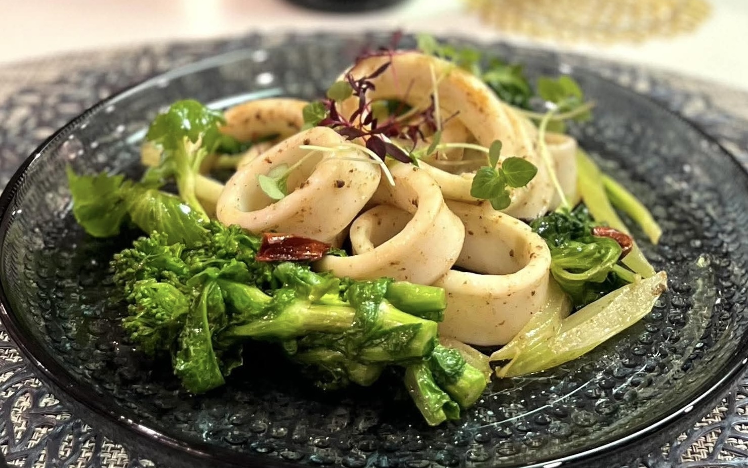 4月のレシピイカとセロリの焦がしバター肝ソテー |