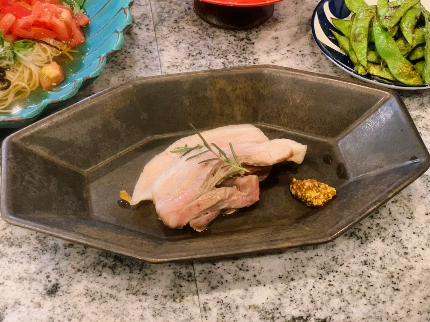 2.スライスして器にもる。そのままでも美味しいが、ローズマリーやタイム、マスタードなどをお好みで添える。
