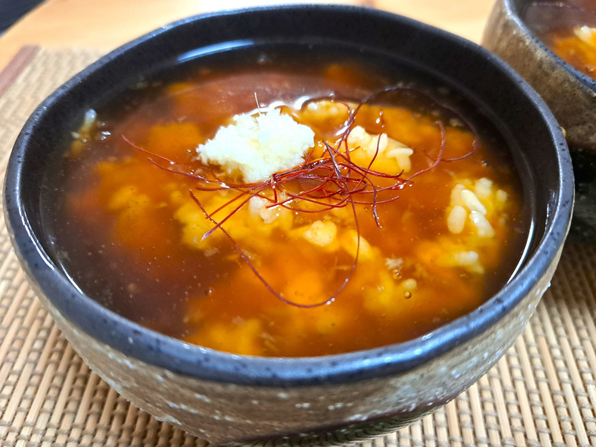 3. すりおろし生姜(好みで三つ葉、焼き海苔)を添える。