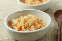 - 炊き立てのご飯に③、オリーブ油、ハーブソルトを加えてざっくりと混ぜ合わせて出来上がり。