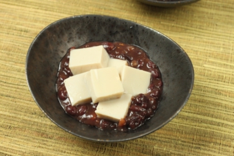 - 小豆に水、くず粉をいれ、中火にかけ、とろりとしてきたら火を止める。