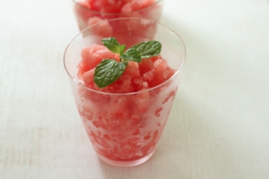 1. すいかは種をとって一口大に切り、砂糖をふりかけて冷凍する。