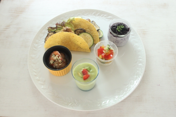 夏野菜とチキンのタコス