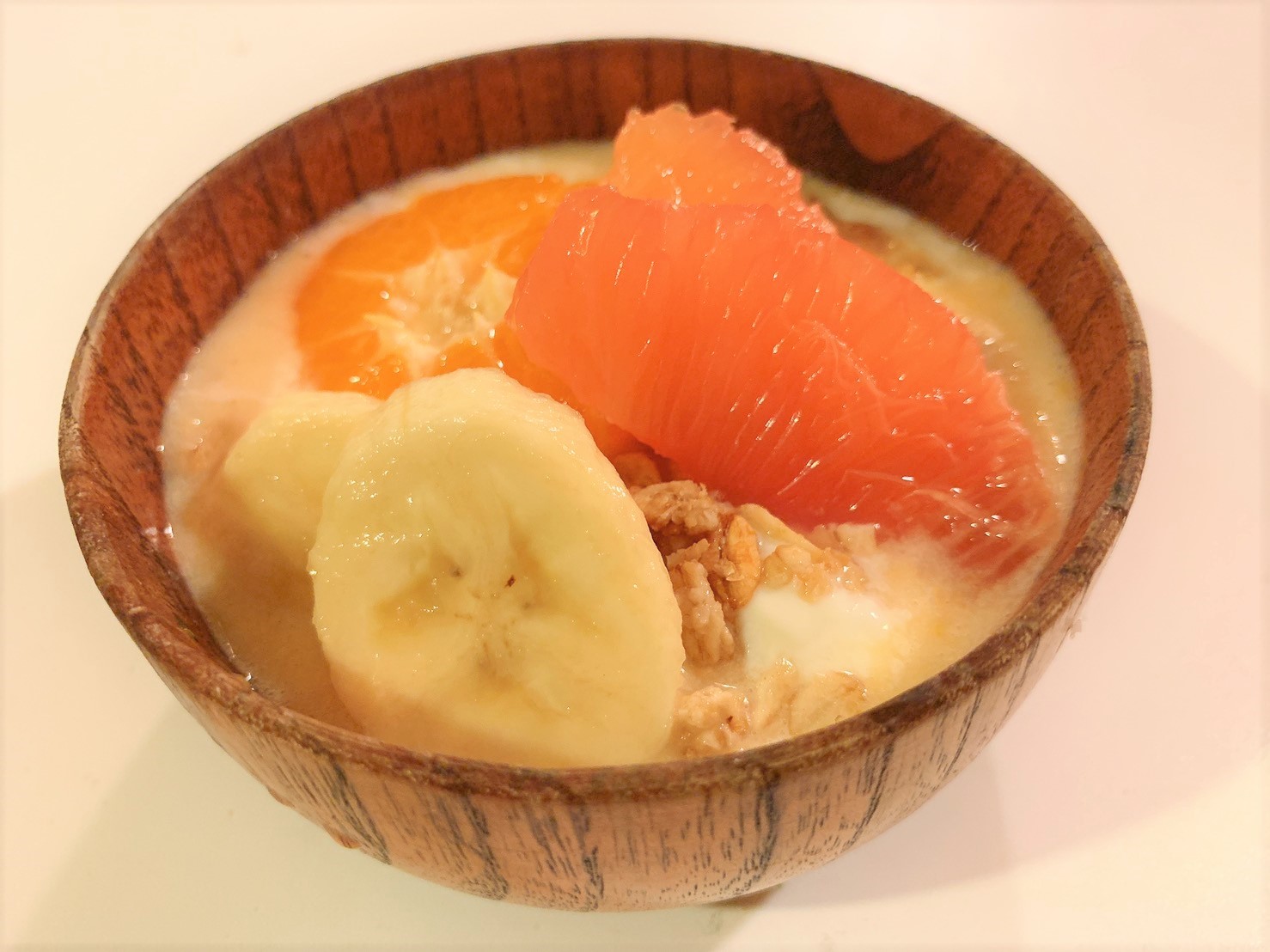 3、グラノーラとお好きな柑橘(分量外)を綺麗にトッピングしてできあがりです