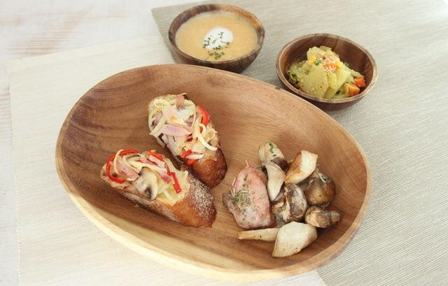 12月のプレートきのこのリゾット/パプリカのポタージュ/オーブンメンチ/りんごのタルト |
